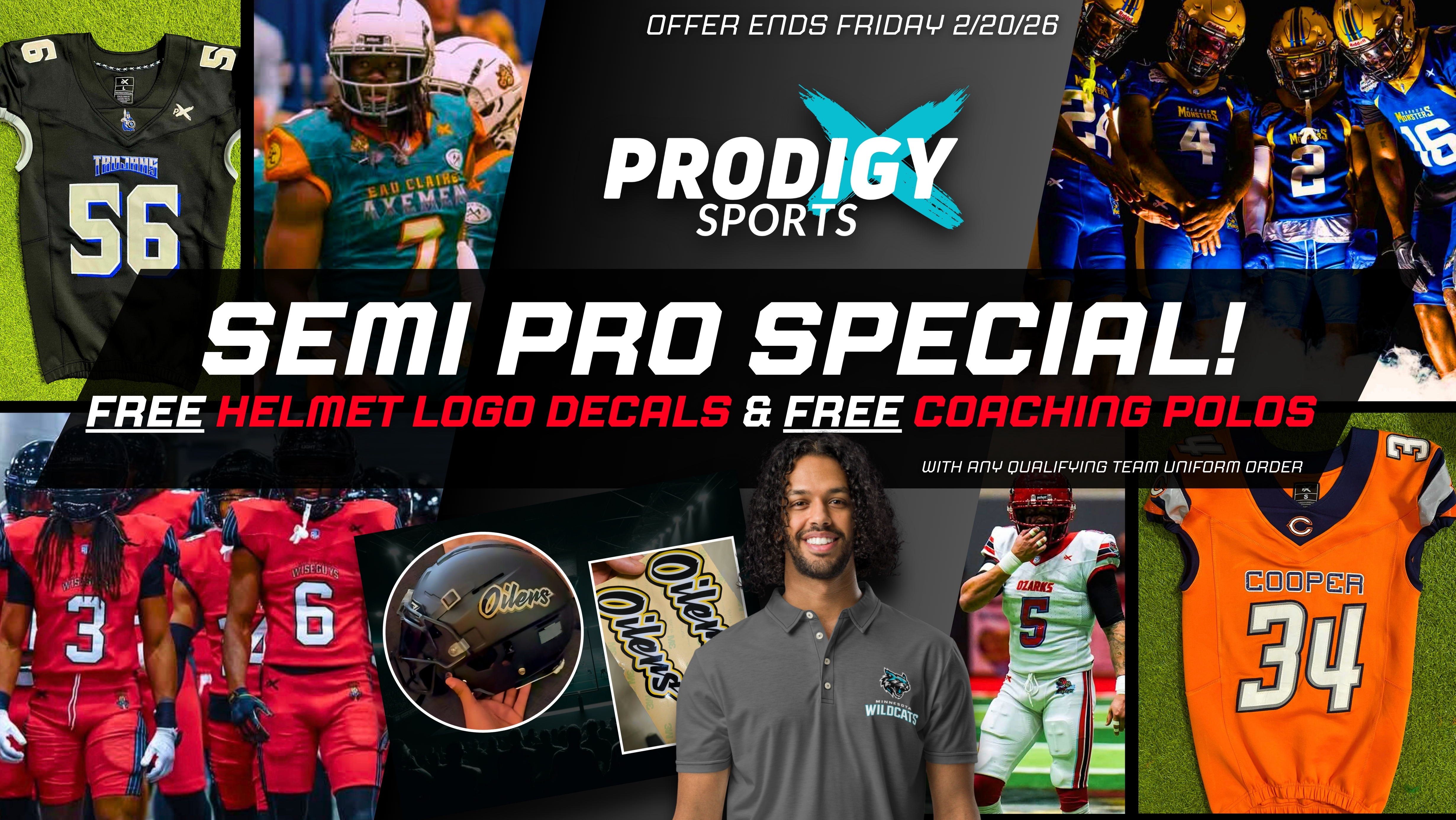 Prodigy X Football is your dedicated partner for enhancing your semi-pro football team's identity and operations. We offer a range of services, including custom uniforms, professional branding, and a suite of tools to elevate your franchise.